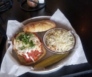 hand-breaded and fried large chicken breast, tossed in mama lorino’s marinara sauce and topped with fresh mozzarella and basil on a ciabatta bun…..$15.75