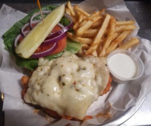 hand-breaded and fried large chicken breast, tossed in our house buffalo sauce, topped with pepper jack cheese, on a fresh bakery bun with lettuce, tomato, red onion and served with a side of ranch…..$18.50