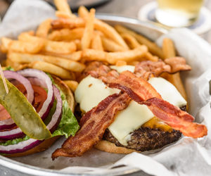 8oz charbroiled ground sirloin topped with lettuce, tomato, bermuda onions, and a pickle spear with your choice of cheese: american | mozzarella | bleu cheese | pepper jack | pimento cheese | cheddar | swiss | provolone | pepper jack, AND two toppings of your choice: fire roasted jalapeños | sautéed mushrooms | caramelized onions…..$16.25